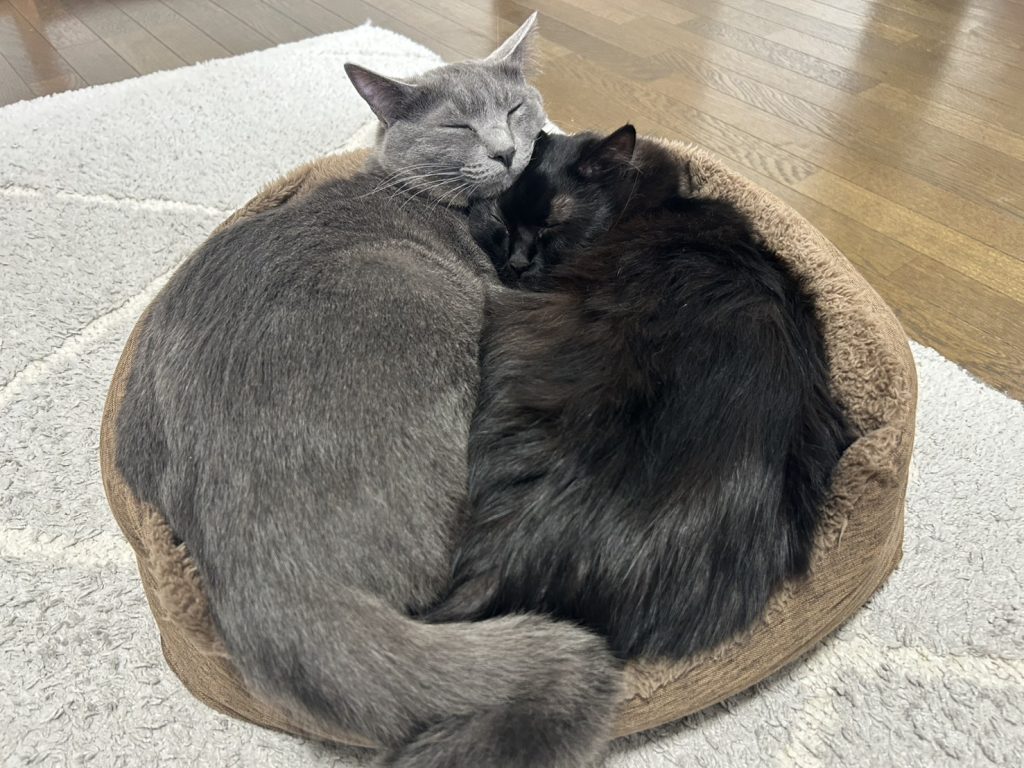 2匹一緒に寝ているのを見るといつも癒されます。
